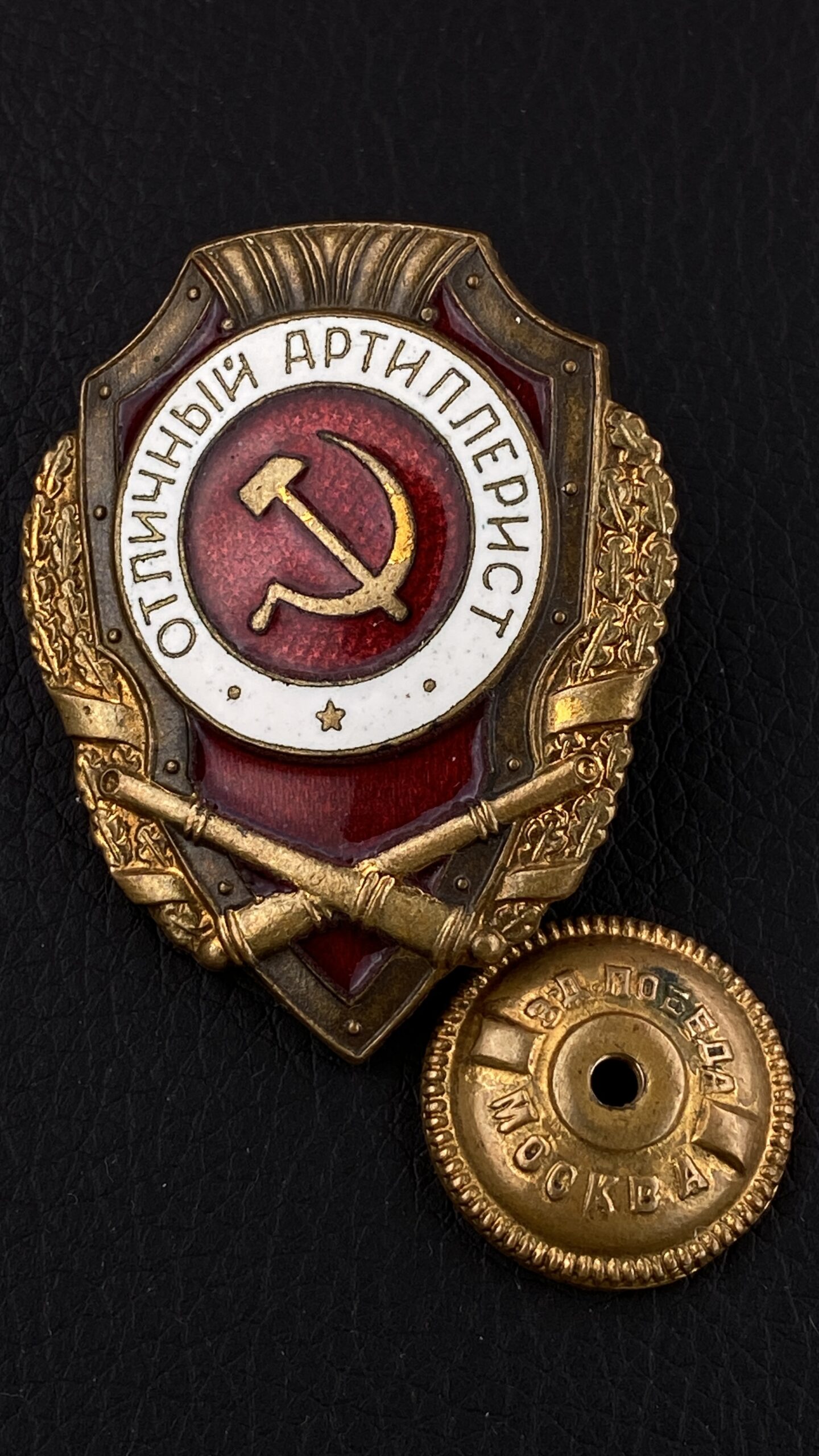 Badge of distinction "Excellent Artilleryman Badge". ["Pobeda" factory]