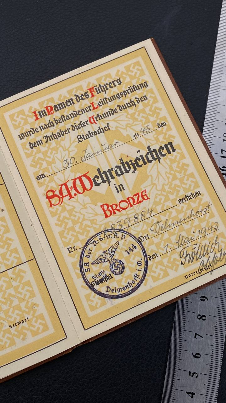 SA Sports Badge model 1933 in bronze [R.SIEPER & SÖHNE] Award set with certificate