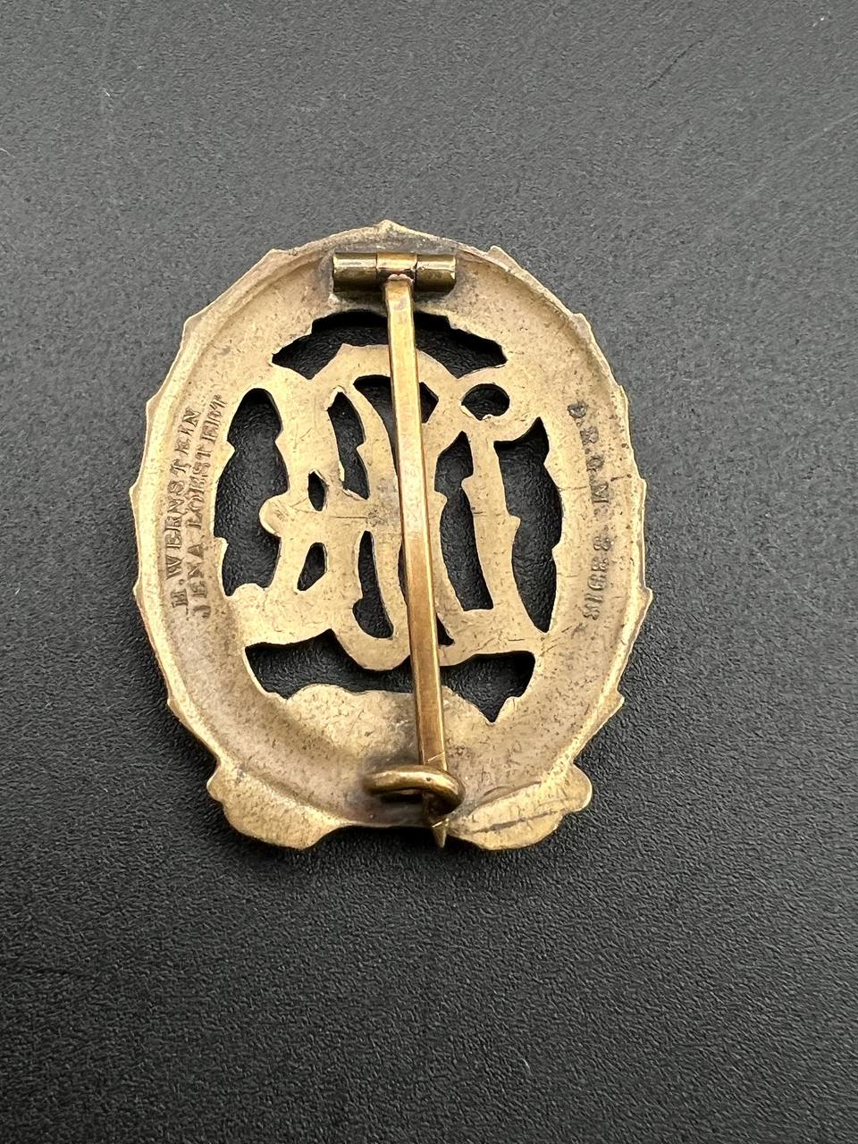 German Imperial sports badge "DRA" model 1913 in bronze [H.W. ERNSTEIN] D.R.G.M.