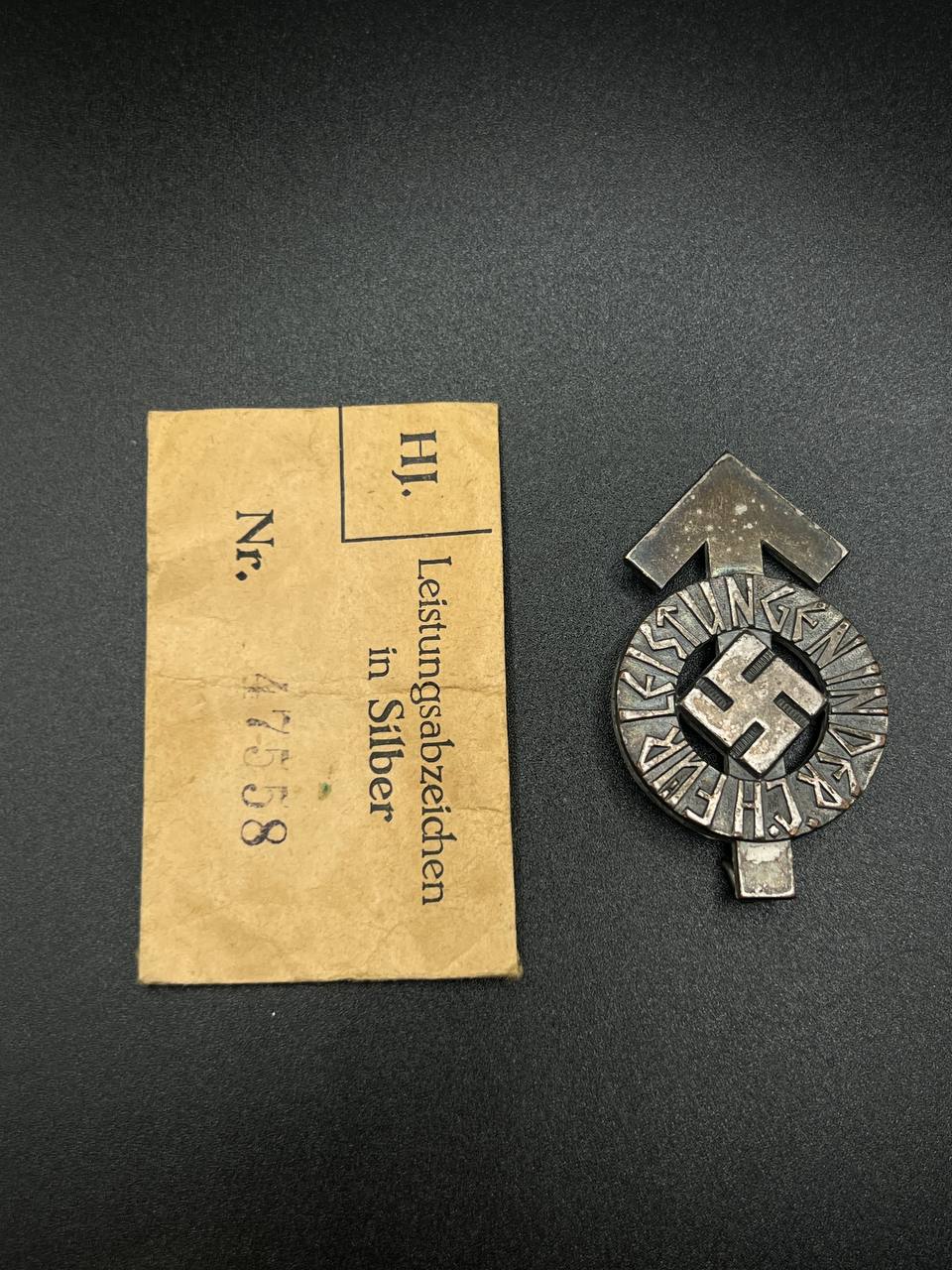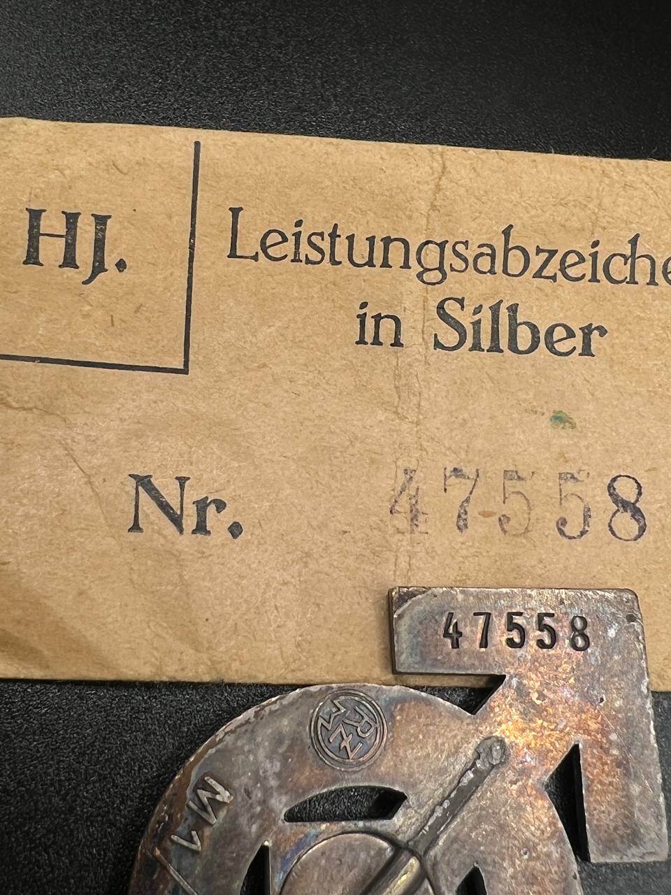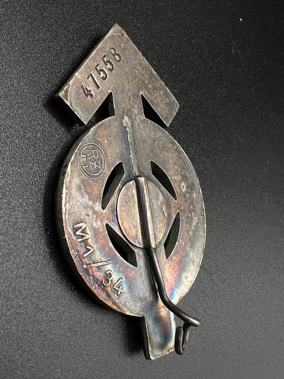 Sport Badge of HJ model 1934 in silver [KARL WURSTER] RZM code: M1/34 with Matching. Numbered - 47558