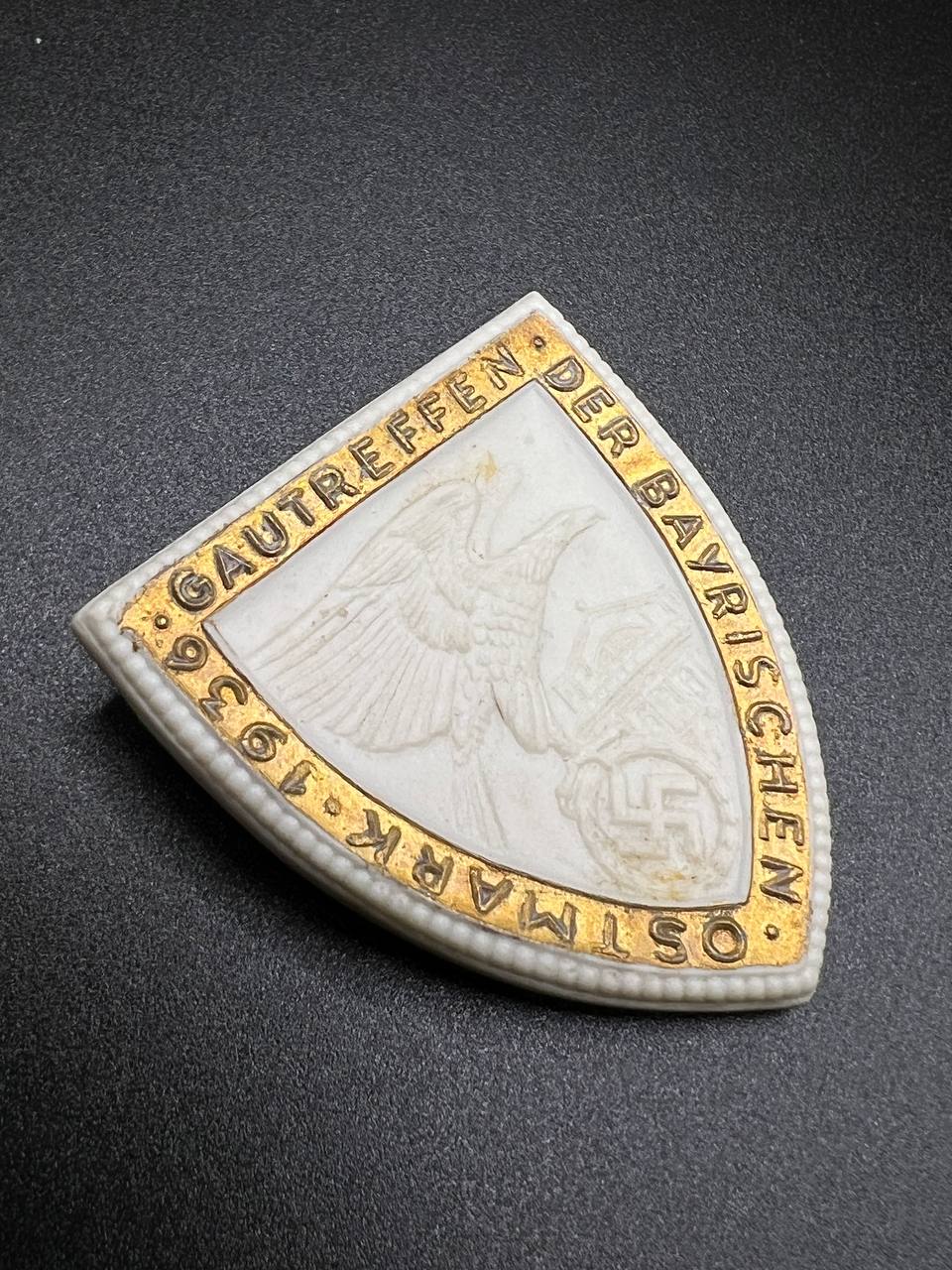 Name Badge “Gau Rally of the Bavarian Ostmark” (Gautreffen der Bayerischen Ostmark), porcelain
