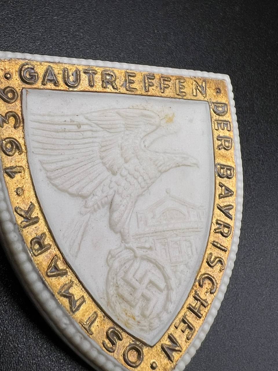 Badge “Gau Rally of the Bavarian Ostmark” (Gautreffen der Bayerischen Ostmark), porcelain 1936 Porzellanfabrik Heinrich
