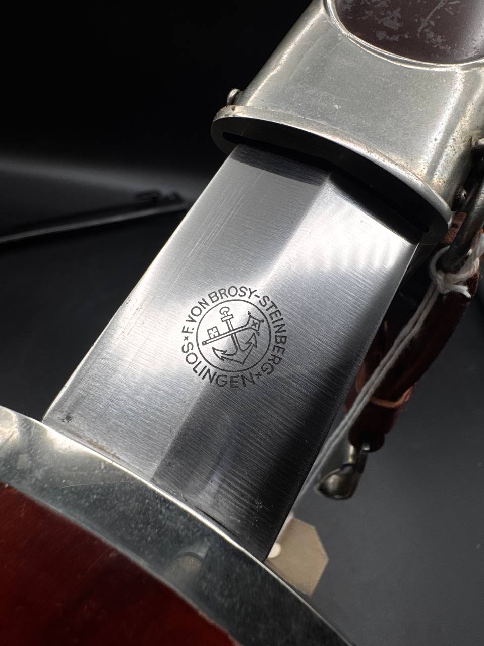 F. von Brosy-Steinberg, Stahlwarenfabrik was founded in 1872 and officially registered in Solingen on July 2, 1889. In 1895, the firm registered its trademark featuring a crossed key and anchor. An advertisement published in 1922 in Solingen und sein Industriebezirk marked the company’s 50th anniversary. At that time, the firm’s product range included cutlery, pocket knives, scissors, razor blades, razors, as well as manicure instruments. During the Third Reich period, the company produced early SA daggers. According to collector research by Fisher, the estimated production quantity was approximately 1,000 pieces. Business records from 1939 list Hans von Brosy-Steinberg and H. Schopp as the company’s owners. At that time, the factory was located at Wuppertalerstrasse 251, Solingen-Grafrath.