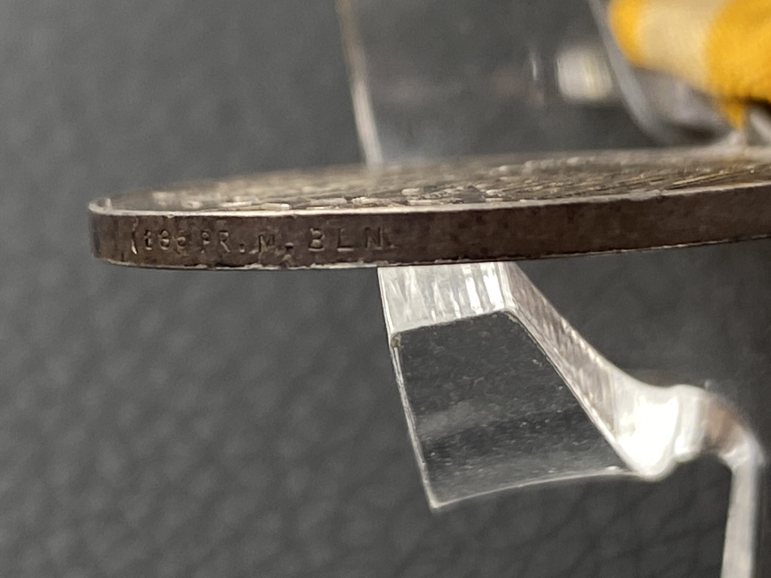 Uniqueness The presence of silver 835 assay and manufacturer's mark on the medal